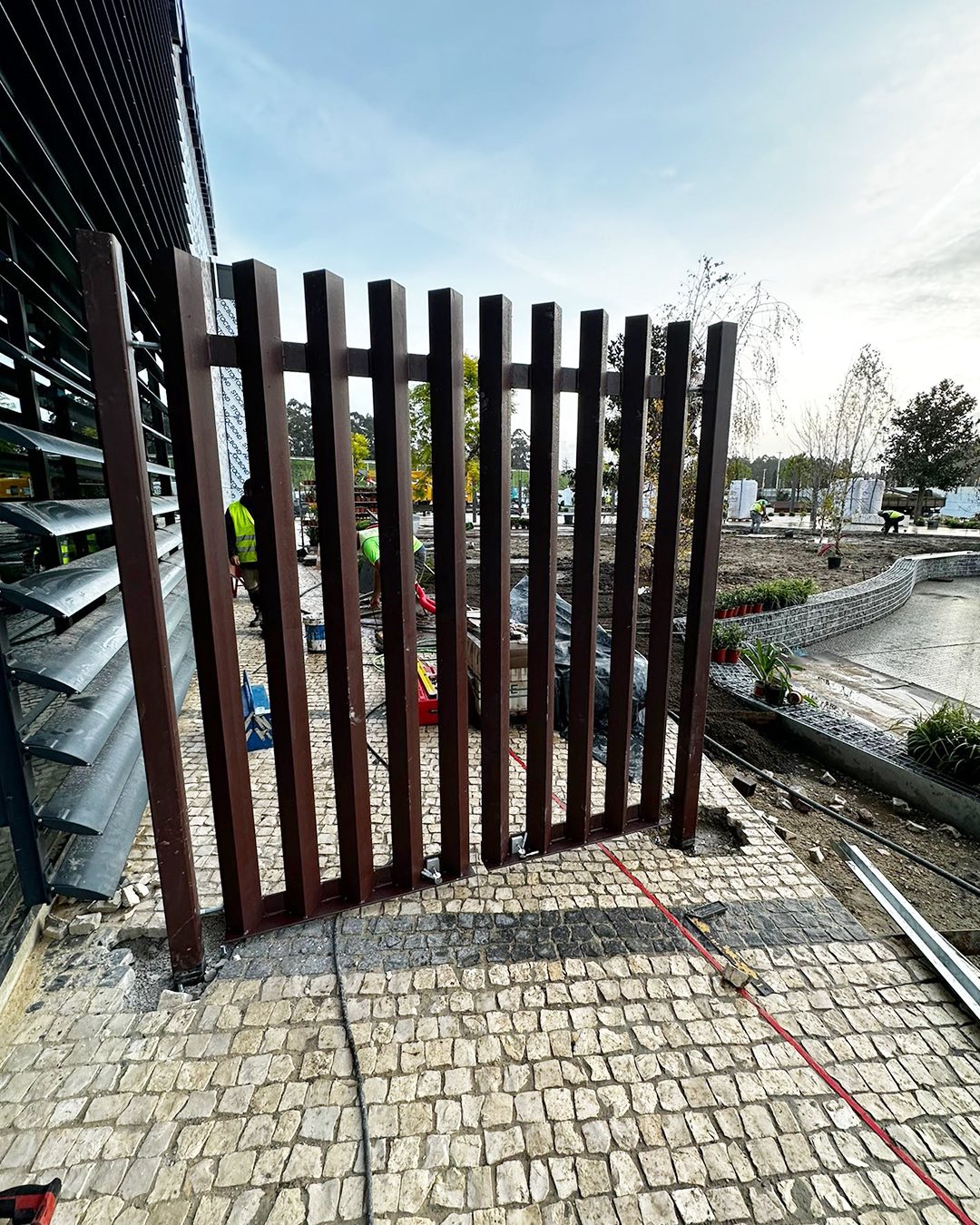 Fabrico e instalação de portões exteriores para o Outlet de Vila do Conde, desenvolvidos com foco na segurança, durabilidade e integração arquitetónica.