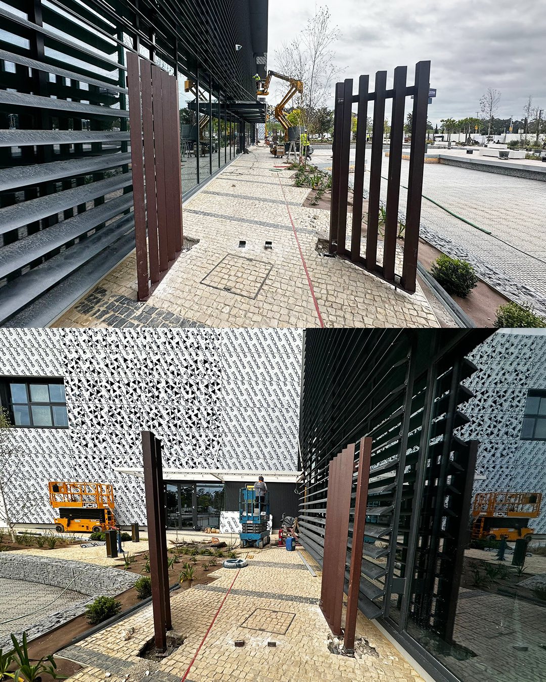 Todo o processo — desde o fabrico em oficina até à montagem em obra — foi executado com rigor técnico, assegurando precisão, fiabilidade e qualidade de acabamento.